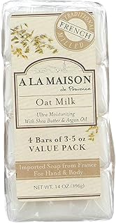 A La Maison Pains de savon ultra-hydratant Oat Milk - Au lait d'avoine, à l'huile d'argan et au beurre de karité - Super Value Pack (Paquet de 4 savons)