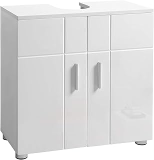 [en.casa] Meuble de Salle de Bain sous Lavabo avec 2 Portes et 2 Compartiments de Rangement Séparés Meuble Design sous Vasque 60 x 60 x 30 cm MDF Laqué Blanc