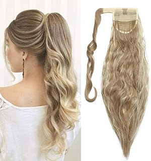 Extensions A Clip Queue de Cheval Synthétique Postiche Queue de Cheval Longue Wrap Around Ponytail Extension Clip In 26 Pouces, Blond Cendré & Blond Très Clair