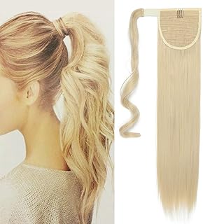 Extensions A Clip Queue de Cheval Synthétique Postiche Queue de Cheval Longue Wrap Around Ponytail Extension Clip In 26 Pouces, Blond Très Clair