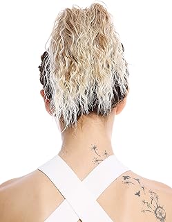 FESHFEN Queue de Cheval Extension Pince, 48 cm Postiche Queue de Cheval Bouclé Ondulé Ponytail Cheveux Claw on Ponytail Synthétiques Longue Queue Cheval Extension, Blond
