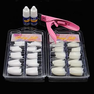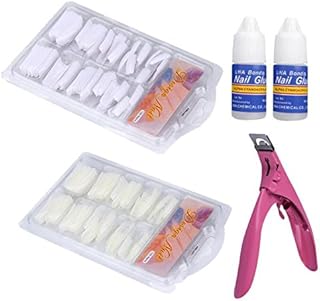 Kit Faux Ongles Acrylique Capsules Colle Coupe-Ongle Guillotine Nail Art 100pc Faux Ongles Blanc 100pc Faux Ongles Naturels 10 Tailles Manucure Salon