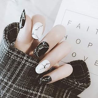 Faux marbre Simsly Nails Medium Press sur Party Nails faux ongles couleur pure PARFAITEMENT faux ongles Astuce pour la femme (24pcs)