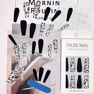 EBANKU Léopard Couleur Unie Faux Ongles Cercueil Artificiels Longs Faux Ongles Ballerine Pleine Couverture Fake Ongles Conseils 912 Pièces Manucure Nails pour Femmes Filles