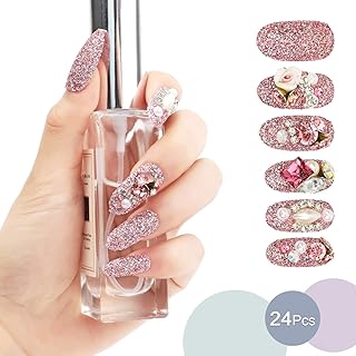 MWOOT Faux Ongles (24 Pièces), Ongles Artificiels pour Manucure de Mariées Mariage, Ongles Décorés - Press On Nails GD Pink