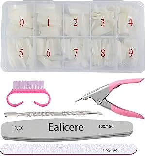 Ealicere 500 Pièces Faux ongles Naturel Français Acrylique Kit Faux Ongles capsules ongles Ensemble de Manucure Professionnel avec 1 Coupe-ongles en Acrylique 2 Lime à Ongles 1 Propulseur de Cuticule