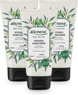 alkmene Crème pour les mains à l'olive biologique - creme reparatrice mains très sèches - végan sans silicones, parabènes, huiles minérales, PEGs, SLS & SLES - soin des mains (3x 75 ml)