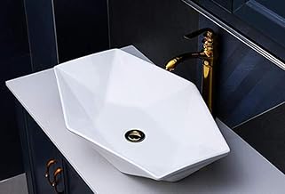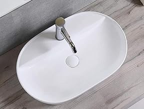 warenplus Vasque à Poser en Céramique Lavabo Salle de Bain Lavabo Vasque Ovale Diamant Blanc 56,5x38