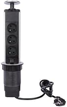 Elbe Inno Prise escamotable 3 Prises avec Interrupteur Diamètre 80mm Norme Allemande Bloc Prise escamotable Prise pour Plan de Travail Prise encastrable Plan de Travail