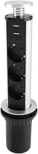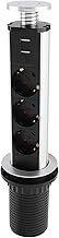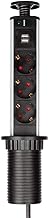 Logtronik Multiprise Encastrable Bloc Prise Escamotable à la Norme Européenne - avec 3 Prises de Courant 2 USB Prises - Diamètre 60mm Câble 1,8m - pour Cuisine ou Bureau (Noir)