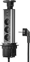 Multiprise Escamotable 3 / 4 Prises Prise Escamotable Prise pour Plan de Travail Prise Électrique Prise de Courant Rétractable pour Bureau Maison (3 Prises)