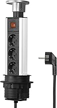 EBTOOLS Multiprise Encastrable Plan de Travail avec 4 Prises de Courant Bloc Prise Escamotable avec Câble pour Table Bureau Cuisine Conception Sûre