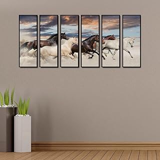 999store Plusieurs images Impression numérique laminé Fibre encadrée Imprimé Cheval Course indien indien Grande indien Large Big Art Panneaux murale Painting- 6 cadres