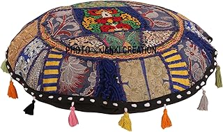 ANJANIYA Magnifique pouf rond indien indien traditionnel en patchwork fait à la main en coton ottoman brodé Blanc 81,3 cm
