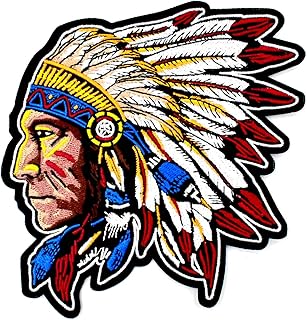 Lilie Créa Patch brodé Indien, Indien d'Amérique, Chef Indien, USA, écusson thermocollant amérindien 13,5 x 11,7 cm cm