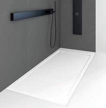 Receveur de douche blanc, design moderne, modèle Malaga, en marbre et résine, effet pierre ardoise, modèle de luxe, avec Gelcoat, extra-plat 3 cm, blanc