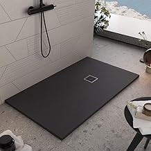 Essence ArredoBagno Receveur de douche en résine 140 x 90 cm, effet pierre, antidérapant avec gelcoat, modèle Rome noir, grille et bonde incluses.