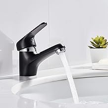 Auralum Robinet de Salle de Bain, Noir Mitigeur Lavabo Bec Bas à une poignée, Froid & Chaud Disponible, Robinet Lavabo Conception de la poignée incurvée,pour salle de bain et lavabo