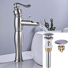 Saeuwtowy Robinet Salle de Bain Cascade Mitigeur Lavabo Laiton Brossé Robinetterie Pop-up Automatique Pr Evier Lavabo Avec d'eau Douce Robinet Lavabo en Cuivre Pour Vasque à Poser Salle de Bain