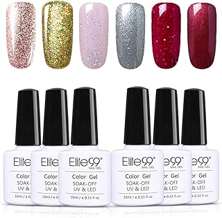 Elite99 Vernis Semi permanent Pailletes Lot de Vernis à Ongles 6pcs Nail Gel UV LED Soakoff Kit Manucure Pour Ongle, 10ml-02