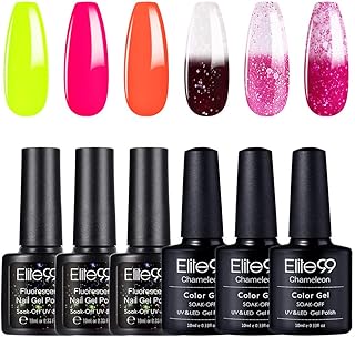 Elite99 Vernis Semi permanent Caméléon Change de couleur de Température, Lot de Vernis à Ongles 6pcs Nail Gel UV LED Soakoff Kit Manucure Pour Ongle, 10ml